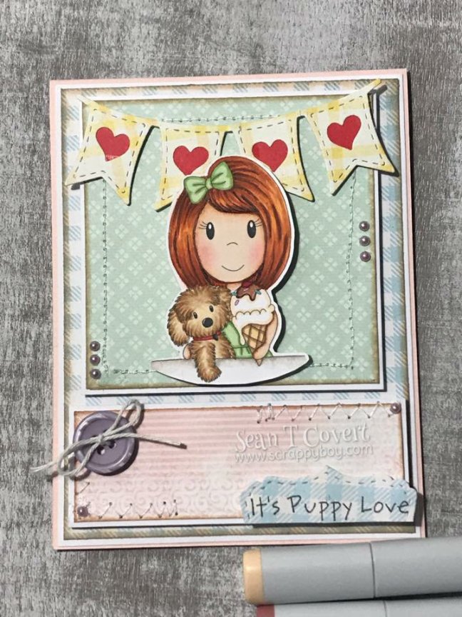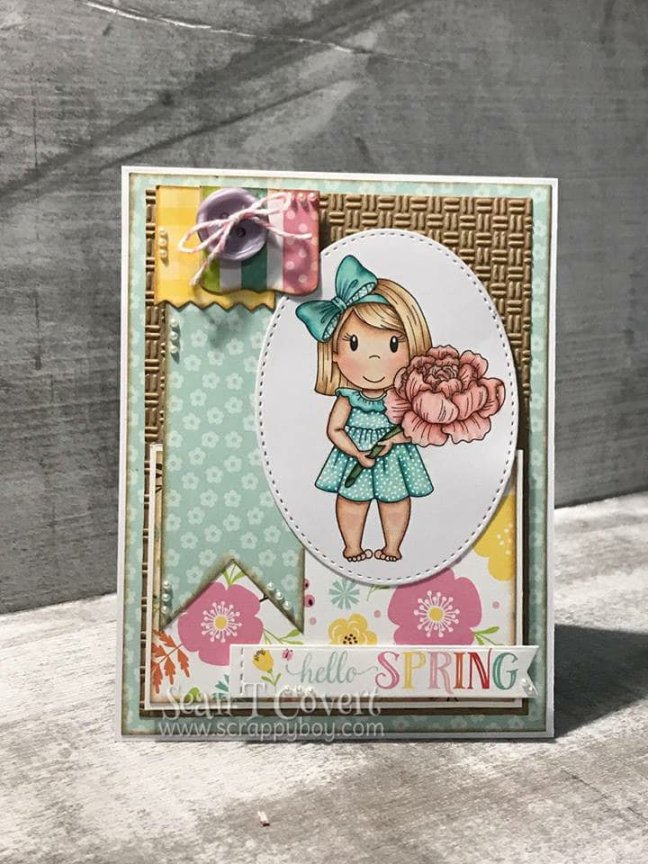 Hello, hello. Today I’m here with the amazing Sean Covert, Crop Manager for Scrapbook Expo and paper crafter extraordinaire. His layering skills are phenomenal and his coloring is absolute perfection.